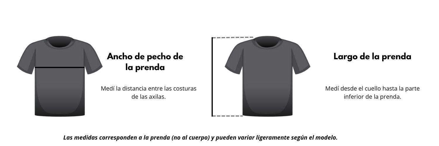 | Talle | Equivalencias (edad aprox.) | Ancho de pecho de la prenda | Largo de la prenda |